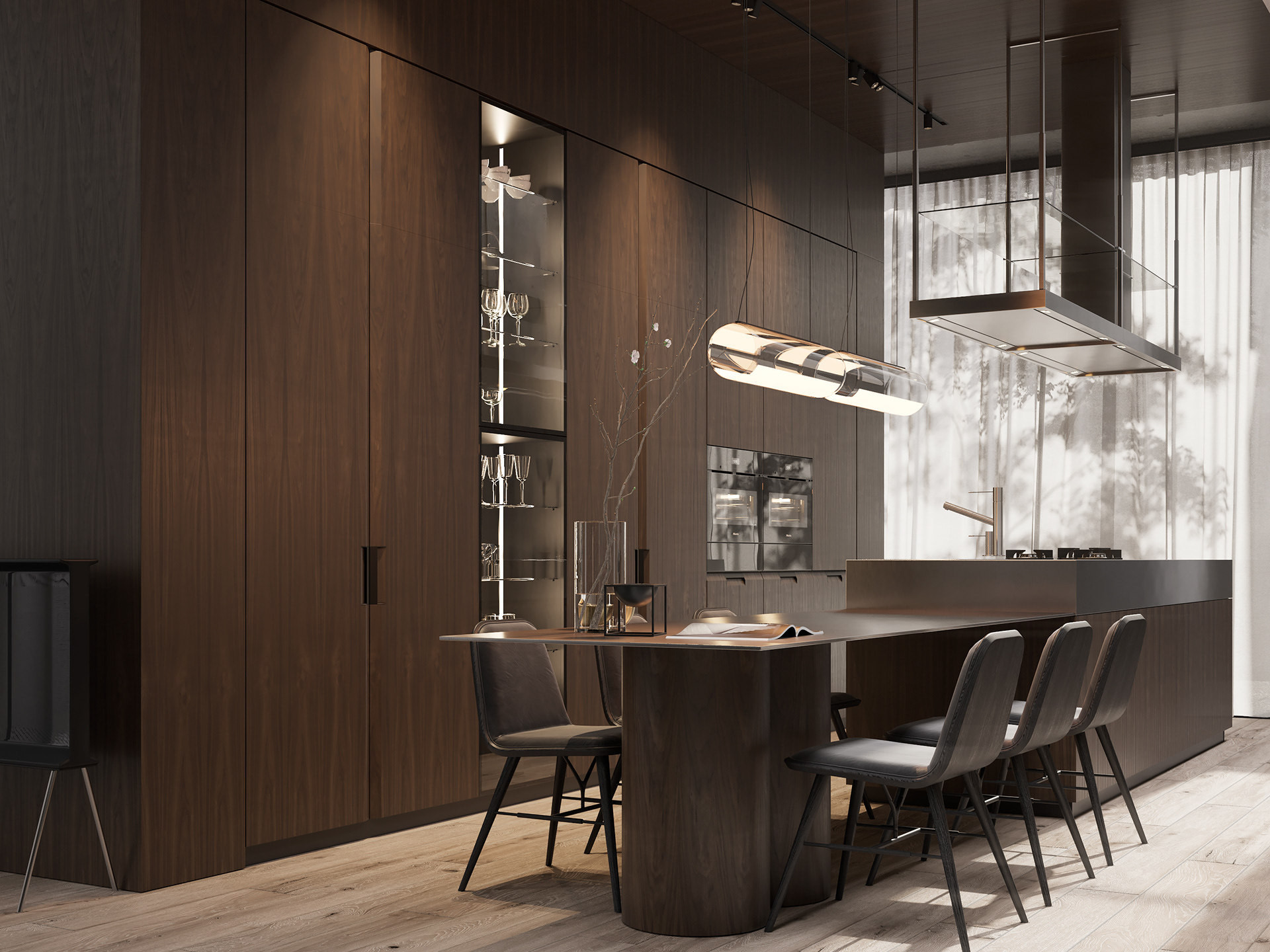 Stage: project Project year: 2019 Area: 85 sq.m. Location: Kyiv, Ukraine Designer: Maksym IuriichukThe project was created for the client, who sometimes gets bored with life in the city, traffic jams and noise, but does not want to lower the level of comfort; a small summer house near Kiev was created. It has everything that is needed for a short-term, but good rest in the country, taking into account the preferences of the client. For example, in the house a priority was set for a large kitchen (the client loves to cook and conduct culinary experiments). There is no office or large guest room, as this is the house where the client wants to be alone.